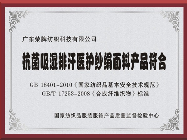 jinnian金年会抗菌吸湿排汗医护纱绢面料产品符合国家标准